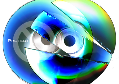 ・PROTECTは破壊と守るイメージを融合させた作品。CDーRを破壊することによって中の情報が守られる、ということをイメージして制作しました。