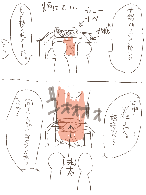鍋が凄く厚いせいか…高さがあるせいか、全然煮えなかったので沢山枝を焼べた結果。