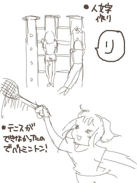 テニスはネット使えなくて、仕方なくバドミントンしながら、あいつこそテニスの~を歌ってました。